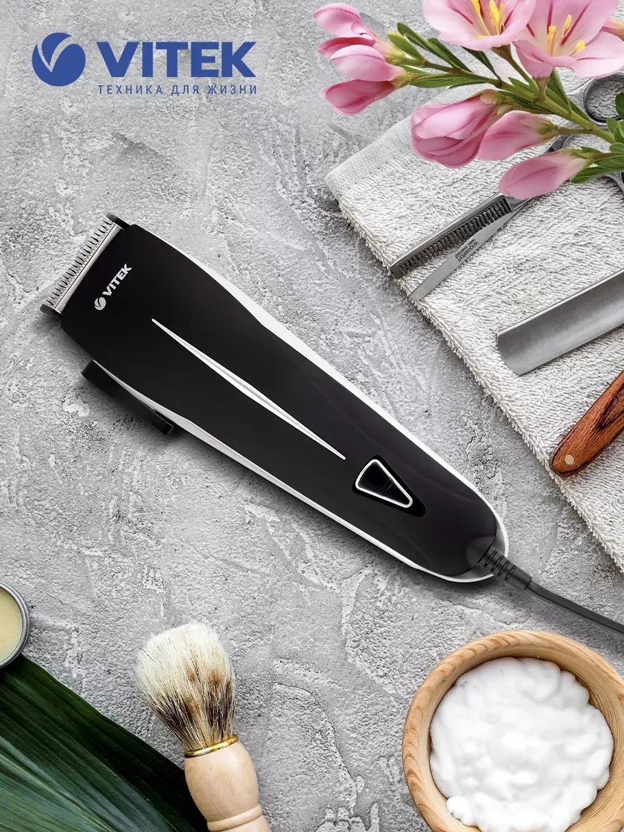 В комплект с прибором входят расческа, ножницы, специальная щеточка, а также смазочное масло, которое поможет правильно ухаживать за прибором и сохранять его в рабочем состоянии. Купить машинку для стрижки волос значит, получить действительно надежный высококачественный прибор по доступной цене. С VITEK жить в большом городе легко и комфортно!