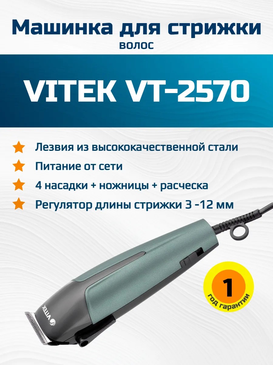 Машинка для стрижки Vitek VT-2570 предлагает вам стиль и качество, которые вы ожидаете от продукции бренда Vitek.