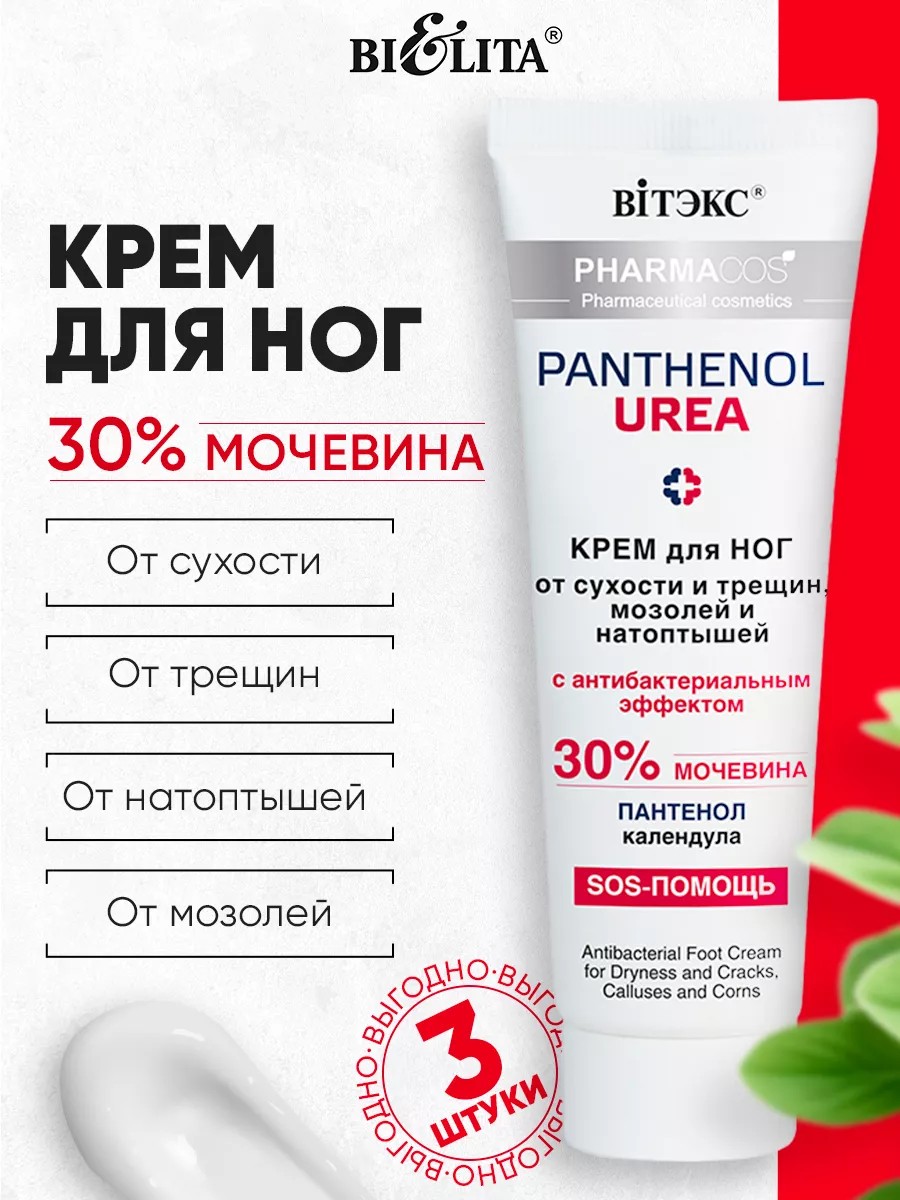 3 шт. Крем для ног с мочевиной 30%, Pantenol, 75 мл