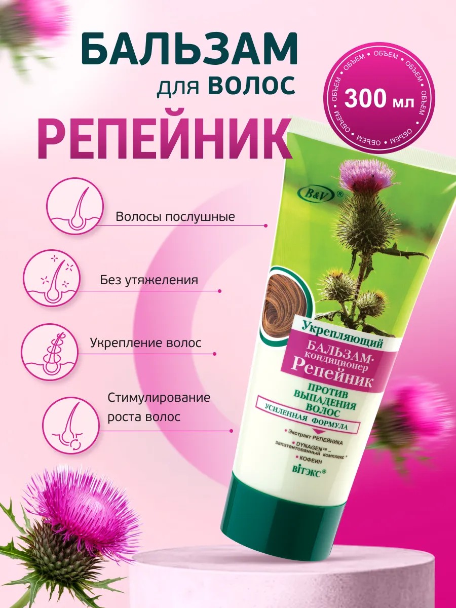 Бальзам для волос против выпадения с репейником — это эффективное средство, разработанное для укрепления волос и предотвращения их потери. Бальзам для волос восстанавливающий содержит экстракт репейника, запатентованный комплекс DYNAGEN и кофеин, которые в комбинации работают на улучшение состояния волос и кожи головы.