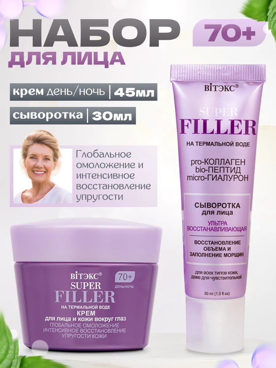 Подарочный набор Super Filer от белорусского бренда Белита Витекс включает сыворотку и крем для лица специально разработанные для ухода за кожей лица после 60 лет. Этот набор поможет восстановить упругость, эластичность и здоровье вашей кожи.
