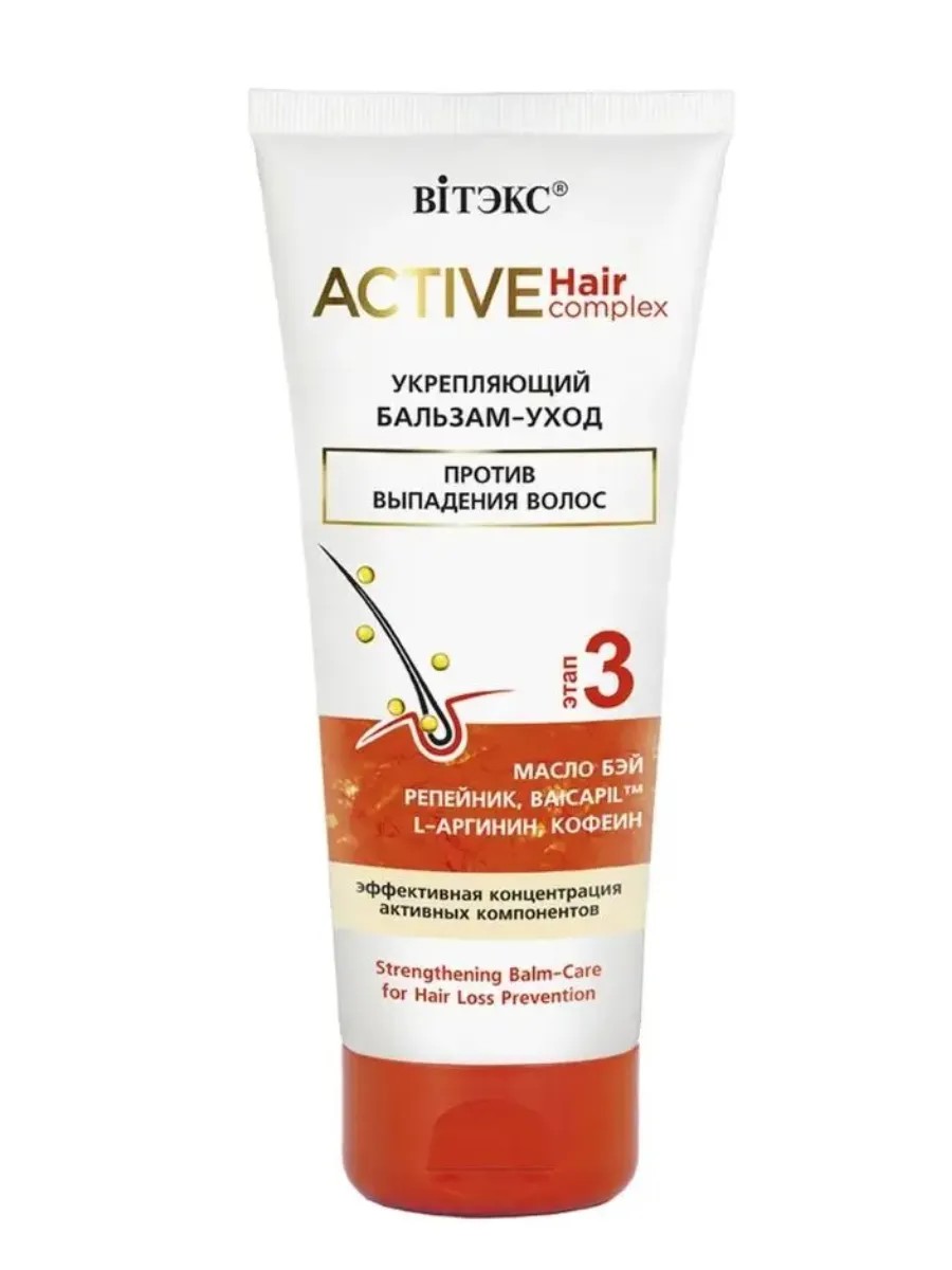 Укрепляющий бальзам-уход против выпадения волос "ACTIVE HairComplex" от белорусского бренда Витекс, подходит как для женщин, так и для мужчин, обеспечивая универсальное решение для всех типов волос. Обеспечьте своим волосам качественный уход с профессиональным бальзамом, созданным для борьбы с выпадением и стимуляции роста. Бальзам для волос белорусский с уникальным комплексом и целебными натуральными компонентами в синергии действуют особенно эффективно против выпадения волос. Уход за волосами с маслом бэй насыщает локоны и кожу головы ценнейшими питательными элементами, укрепляет и оздоравливает волосы. Репейник предотвращает выпадение волос, стимулирует их рост, укрепляет и оздоравливает. Bycapil продлевает фазу активного роста волос, останавливает выпадение, придает волосам плотность и блеск. L-аргинин активизирует микроциркуляцию в коже и улучшает питание фолликулов, стимулируя рост. Кофеин укрепляет тонкие и склонные к выпадению волосы, стимулирует и ускоряет их рост. Комплекс кондиционеров облегчает расчесывание волос, обеспечивает термозащиту, придает объем и блеск. Бальзам для волос профессиональный подходит для ежедневного применения и легко вписывается в вашу рутину ухода за волосами. Уходовая косметика от выпадения волос помогает сохранить влагу, предотвращая сухость и ломкость, что особенно важно в условиях изменчивого климата. Бальзам-кондиционер для волос не только борется с выпадением, но и создает защитный барьер, защищая локоны от негативного влияния внешней среды. Регулярное использование бальзама сделает их более послушными и легкими для укладки волос. Термозащита для волос в составе средства создает защитный барьер, защищая волосы от негативного влияния внешней среды. Бальзам против выпадения волос — это идеальный выбор для тех, кто ищет качественное средство для восстановления и поддержания здоровья волос. Воспользуйтесь преимуществами белорусской косметики Vitex для роста волос и подарите своим локонам должный уход.
