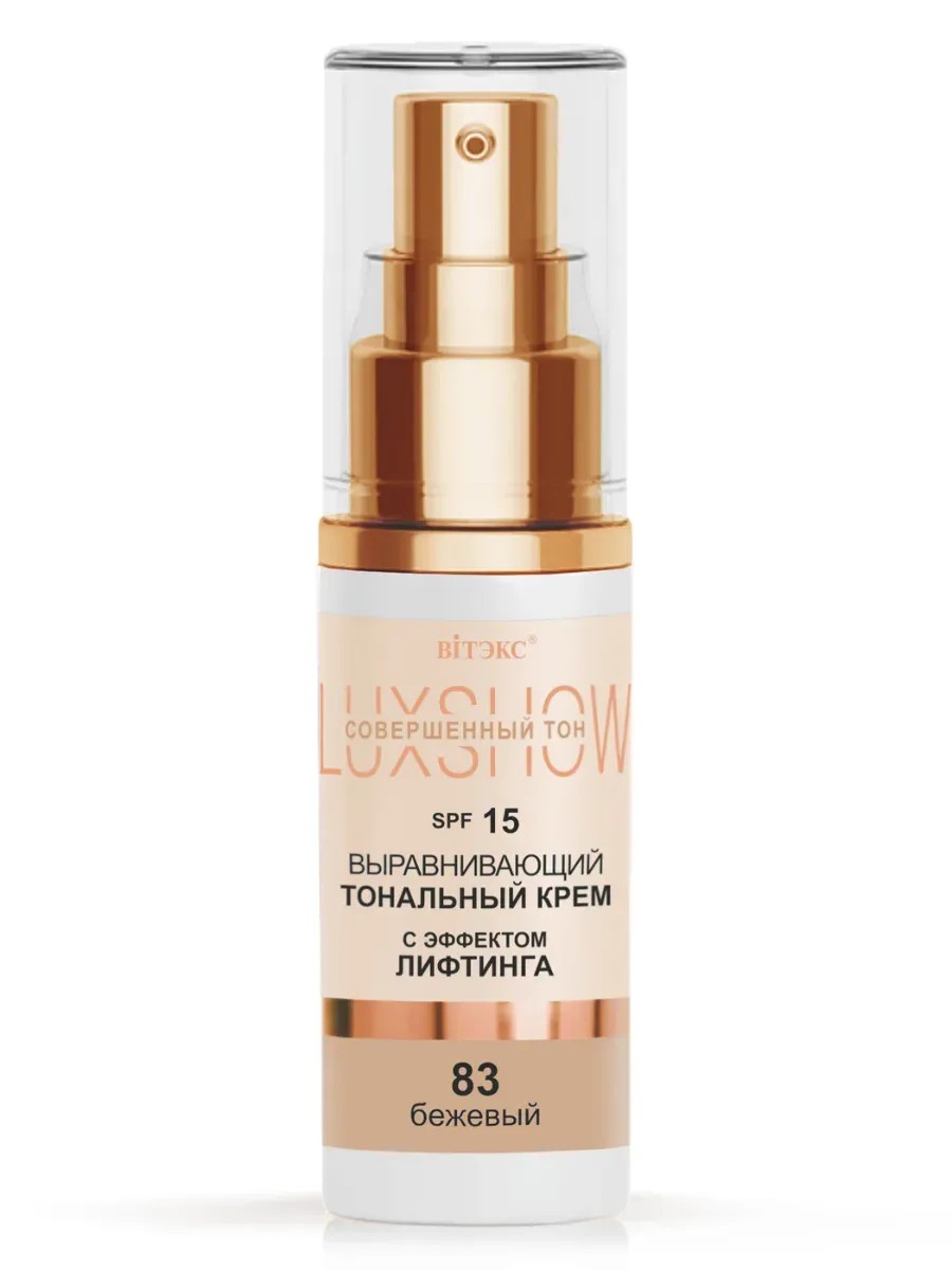 Выравнивающий тональный крем с эффектом лифтинга SPF15, тон 83 Бежевый «LuxShow» от белорусского бренда Витекс — это идеальное решение для создания безупречного макияжа и ухода за кожей одновременно. Тональный крем для лица обеспечивает не только качественное покрытие, но и заботится о здоровье вашей кожи. Декоративная косметика для макияжа женская для лица совмещает в себе безупречные тонирующие свойства и превосходное антивозрастное, увлажняющее, разглаживающее и подтягивающее действие. Шелковистый и чувственный, крем spf легко и гладко распределяется по коже и покрывает кожу невесомой маскирующей вуалью, которая моментально делает морщинки, покраснения, пигментацию и другие несовершенства практически невидимыми, а цвет лица ровным и сияющим на весь день. Тоналка для лица с ухаживающими и омолаживающими компонентами (тетрапептиды, низкомолекулярная гиалуроновая кислота, центелла, макадамия, иглица, календула, витамин Е, пантенол, бетаин) интенсивно питают и увлажняют кожу, повышают ее плотность, упругость и эластичность, разглаживают морщинки, оказывают выраженный лифтинг-эффект. Крем тональный для лица матирующий беларусь с богатой формулой искусно сочетаются пять высокостабильных пигментов, которые выравнивают и подсвечивают кожу, визуально делая ее идеальной при любом освещении. Тональный крем для лица с спф 15 защищает от UVA и UVB лучей, препятствуя преждевременному старению кожи. Сразу после нанесения тональника кожа выглядит сияющей, увлажненной и безупречно гладкой, а несовершенства становятся абсолютно незаметными. Косметика белорусская для макияжа благодаря естественному финишу цвет лица остается ровным, сияющим и свежим в течение всего дня. Выберите тональный крем выравнивающий тон лица бежевый «LuxShow» от Vitex и наслаждайтесь идеальным макияжем, который не только скрывает несовершенства, но и ухаживает за вашей кожей!