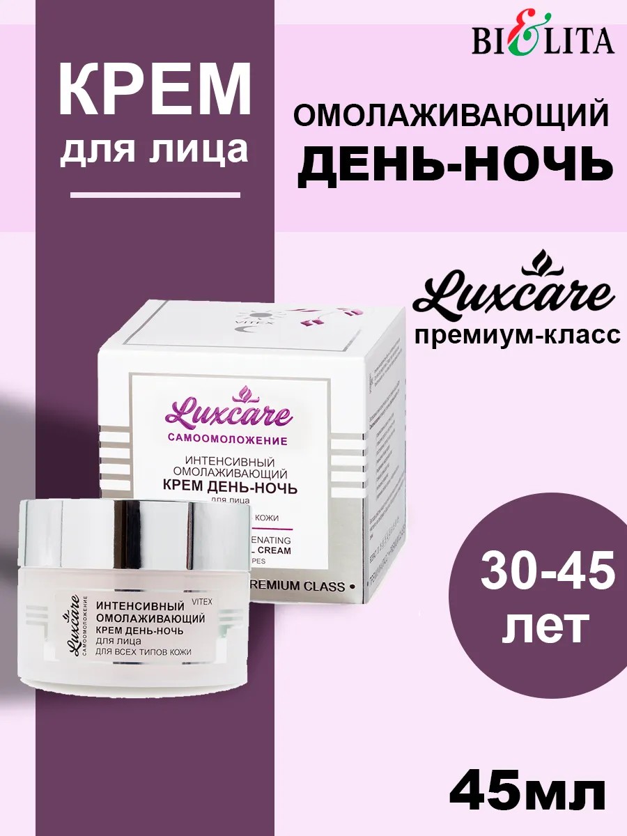 | Полное наименование товара | LUXCARE Интенсивный омолаживающий крем "День-ночь" для лица для всех типов кожи, 45 мл. |