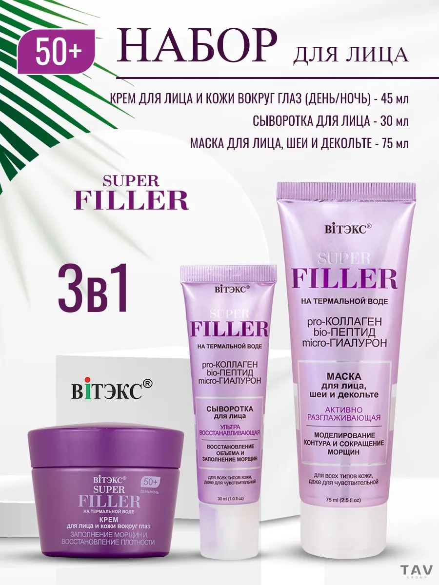 Витэкс Антивозрастной набор для лица 3 в 1 SUPER FILLER 50+