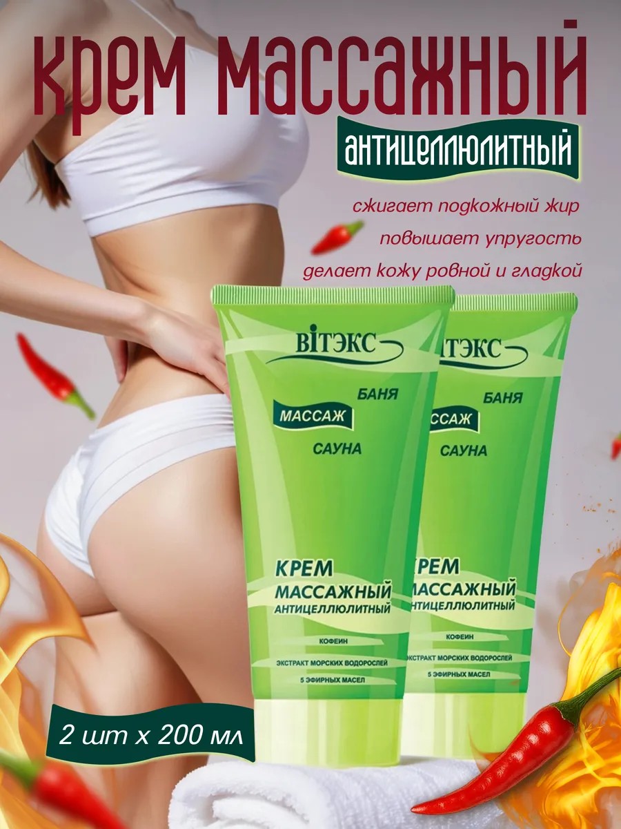 | Полное наименование товара | Антицеллюлитный массажный крем Vitex 2 шт по 200 мл - Уменьшение объемов, коррекция фигуры, против целлюлита с кофеином и перцем |