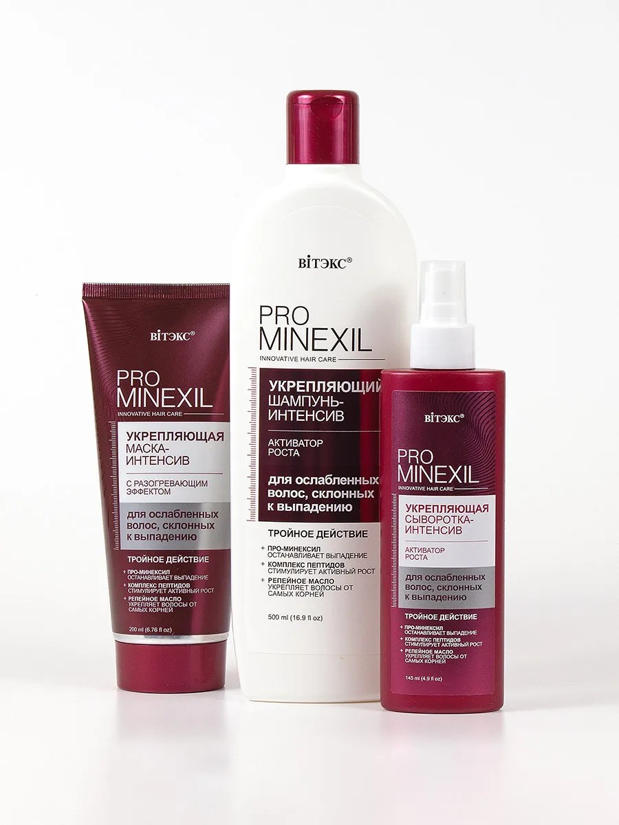 Комплекс ухода за волосами и кожей головы Pro Minexil: Шампунь, Маска, Сыворотка