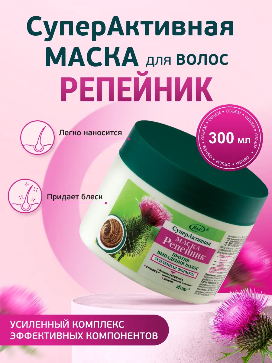 Маска для волос против выпадения с репейником — это эффективное средство, разработанное для укрепления волос и предотвращения их потери. Маска для волос восстанавливающая содержит экстракт репейника, запатентованный комплекс DYNAGEN и кофеин, которые в комбинации работают на улучшение состояния волос и кожи головы.