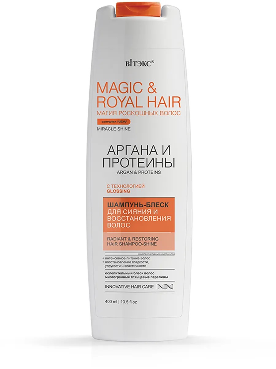 Роскошный шампунь с арганой и тремя видами протеинов от белорусского бренда декоративной и уходовой косметики Biтэкс (Витекс) создан на основе революционной технологии GLOSSING, направленной на глубокое восстановление волос и создание ослепительного, поистине магического сияния.