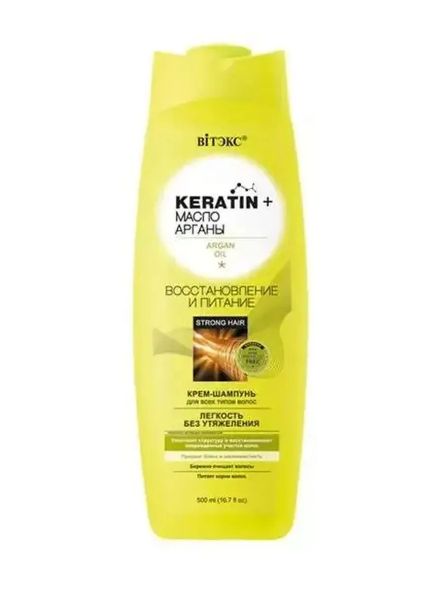 ЛЕГКОСТЬ БЕЗ УТЯЖЕЛЕНИЯКрем-шампунь бережно очищает волосы, глубоко питает, уплотняет структуру волос и восстанавливает поврежденные участки, придает волосам здоровый блеск и шелковистость, не утяжеляя их.Применение: нанесите шампунь на мокрые волосы. Вспеньте массирующими движениями, тщательно смойте водой.Для достижения лучшего эффекта используйте вместе с бальзамом «KERATIN + масло арганы».