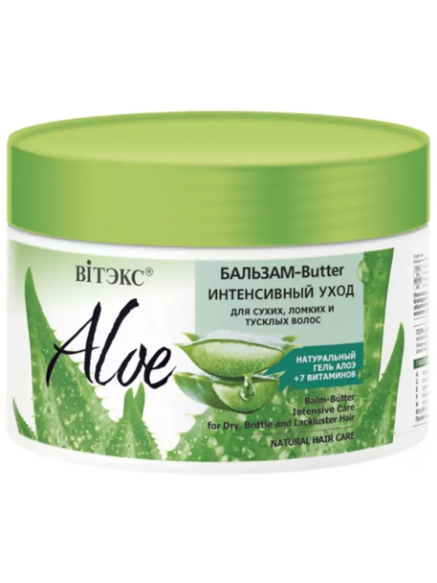 Витэкс, Бальзам-Butter Aloe Интенсивный уход для сухих, ломких и тусклых волос, 300 мл., 1 шт. Глубоко увлажняет и кондиционирует волосы, придает шелковистую гладкость и глянцевый блеск. Система новейших кондиционеров заметно улучшает расчесывание волос, обеспечивает антистатический эффект, разглаживает поверхность поврежденных волос, возвращает им мягкость и шелковистость Масло кокоса глубоко проникает в структуру волос, насыщает питательными веществами, природными антиоксидантами, витаминами, незаменимыми жирными кислотами, помогает сохранить целостность структуры волос. Результат: необыкновенно увлажненные, эластичные, сильные и блестящие волосы от корней до кончиков.