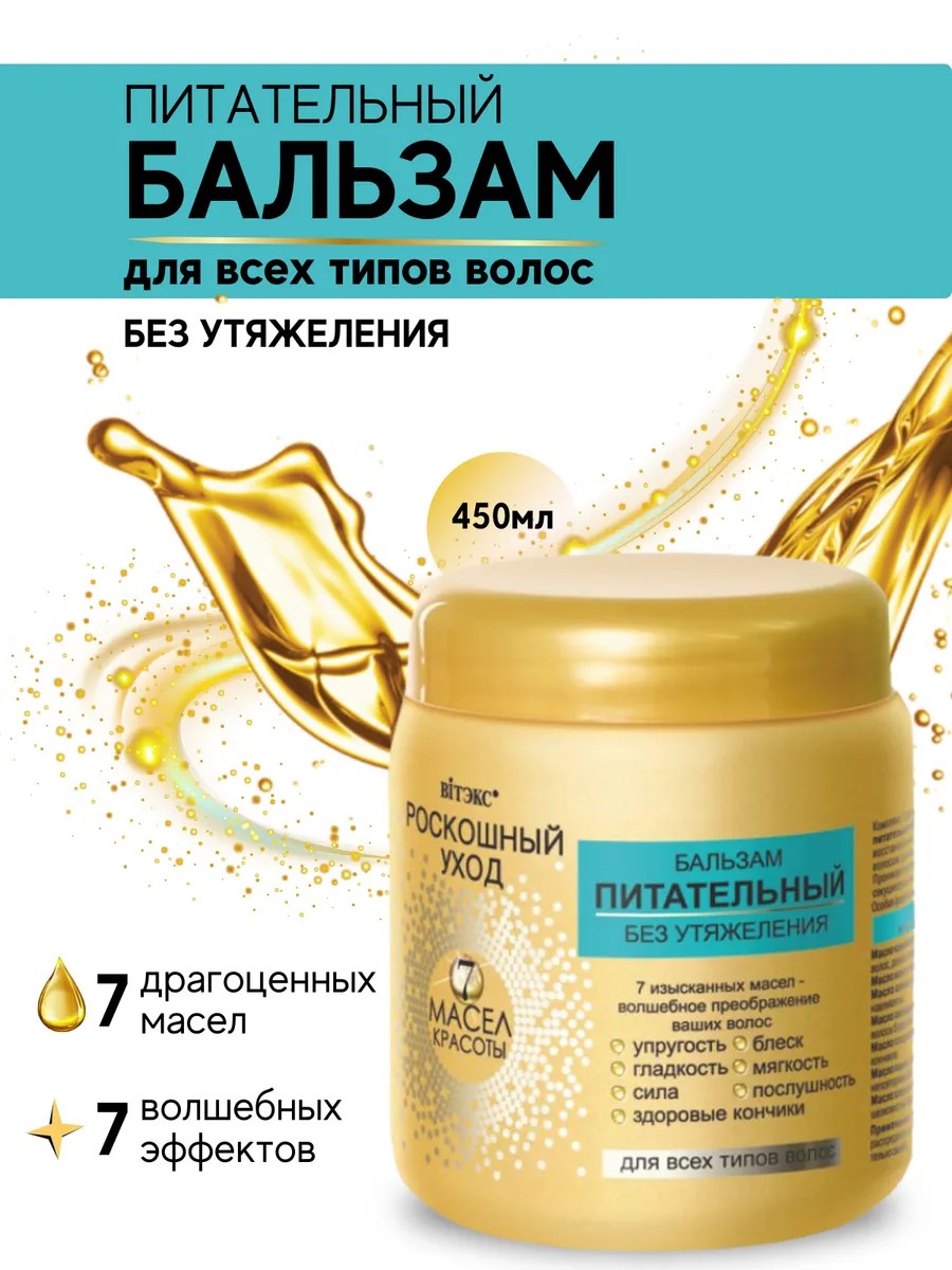 Питательный бальзам для всех типов волос Витэкс Роскошное питание. 7 Масел красоты станет замечательным подарком для ваших волос.
