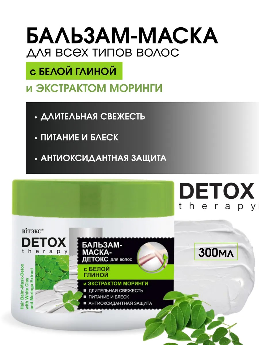 Бальзам-маска DETOX Therapy от Витэкс – это настоящий спа-уход для ваших волос. Обогащенная белой глиной и экстрактом семян моринги, маска глубоко очищает, питает и восстанавливает волосы, возвращая им блеск и шелковистость. Формула с антиоксидантным действием защищает волосы от негативного воздействия окружающей среды, а увлажняющие компоненты придают им мягкость и эластичность. Подходит для всех типов волос, в том числе для жирных, помогая регулировать выработку кожного сала. После использования маски волосы становятся более послушными, легко расчесываются и приобретают здоровый блеск.