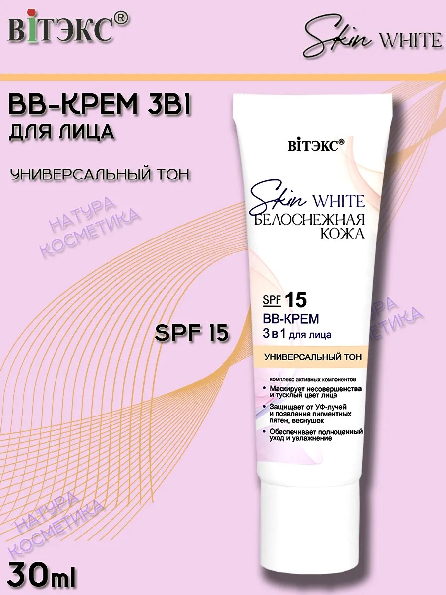 Витэкс BB-Крем 3в1 для лица SPF15 универсальный тон SKIN WHITE,30мл