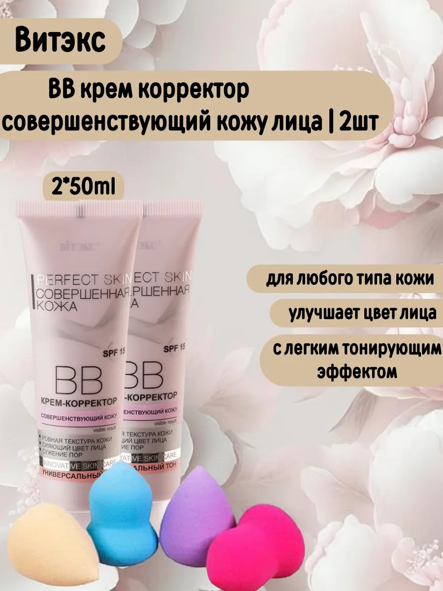 BB крем-корректор совершенствующий кожу Совершенная кожа PERFECT SKIN 2 шт и спонж косметический