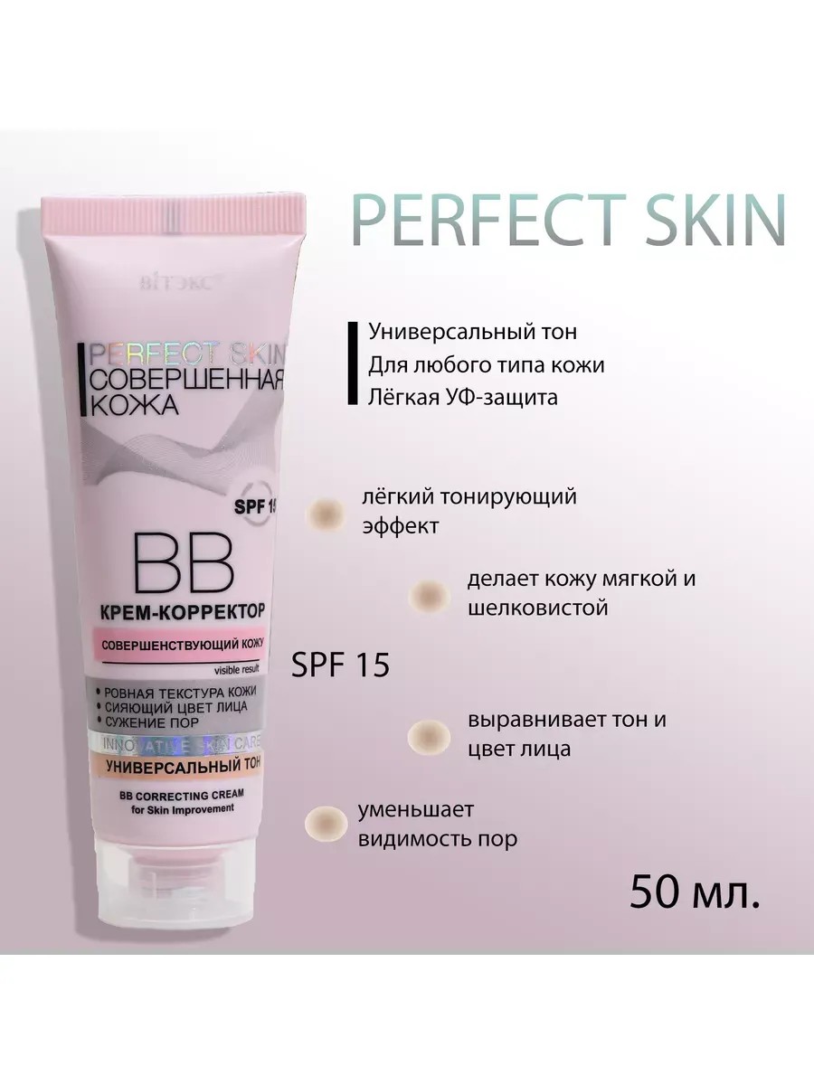 Vitex PERFECT SKIN Perfect Skin BB Cream Corrector. This unique cream corrector has a light toning effect. Evening out skin tone and improving complexion, it perfects the skin. Corrective pigments instantly even out skin tone, neutralizing dullness. SPF protects the skin from premature aging. The patented Epidermist complex improves cellular renewal, reduces pores, and leaves skin soft and silky.