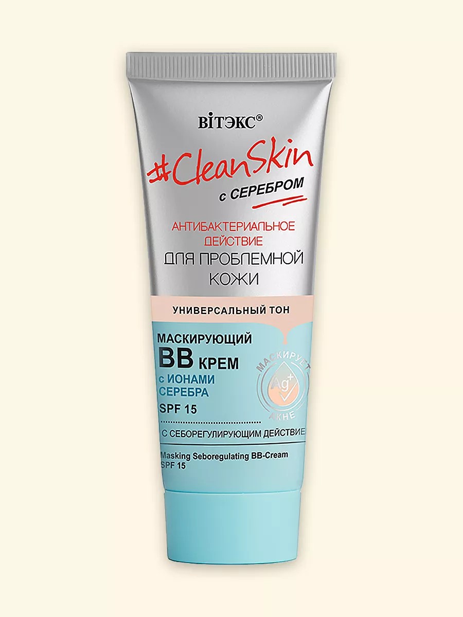 Маскирующий ВВ-крем – это крем-корректор для проблемной кожи с тающими микрогранулами, которые при нанесении меняют цвет, подстраиваясь под тон кожи, маскируя и корректируя несовершенства. Ионы серебра обладают антибактериальным и антисептическим действием, уменьшают воспаления и покраснения, предупреждают повторное появление воспалений.
