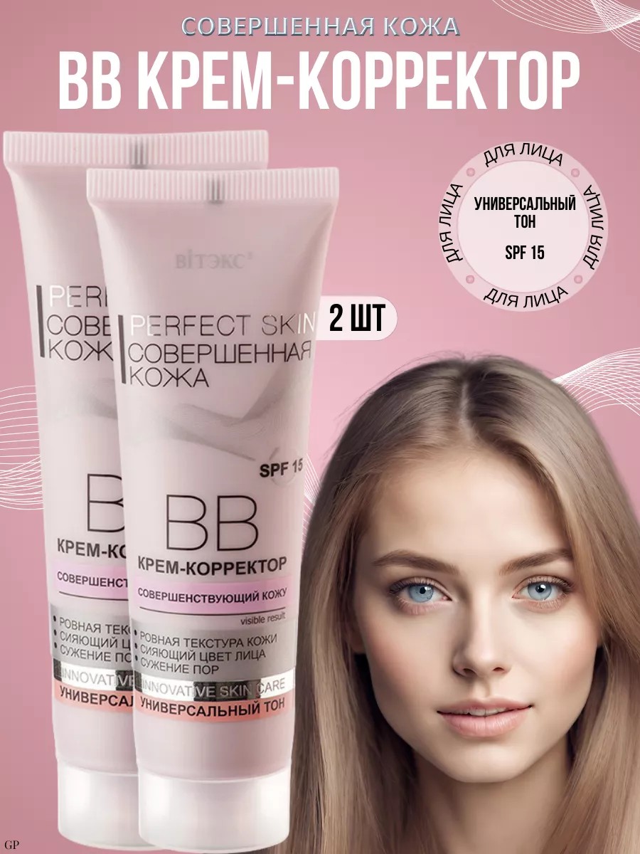 The unique Vitex BB cream corrector adapts to your skin tone, evening out and improving your complexion. It perfects, moisturizes, and provides UV protection. Corrective pigments instantly even out skin tone, neutralizing dullness. SPF 15 protects skin from premature aging. The foundation conceals enlarged pores, uneven skin texture, and pigmentation. The patented Epidermist complex improves cellular renewal, minimizes pores, and leaves skin soft and silky. The result: perfectly smooth and soft skin, with less visible pores. Suitable for all skin types. The set includes two BB face creams. Belarusian cosmetics make a wonderful gift. Foundation, corrective, smoothing, mousse, cushion, dense, collagen-fixing, colorless, lightweight, summer cream powder with sun protection, 3-in-1 professional foundation, concealer, light powder, primer, long-lasting corrector, facial fluid, Photoshop, cosmetic set, CC, mattifying base, glossy, Korean compact foundation.