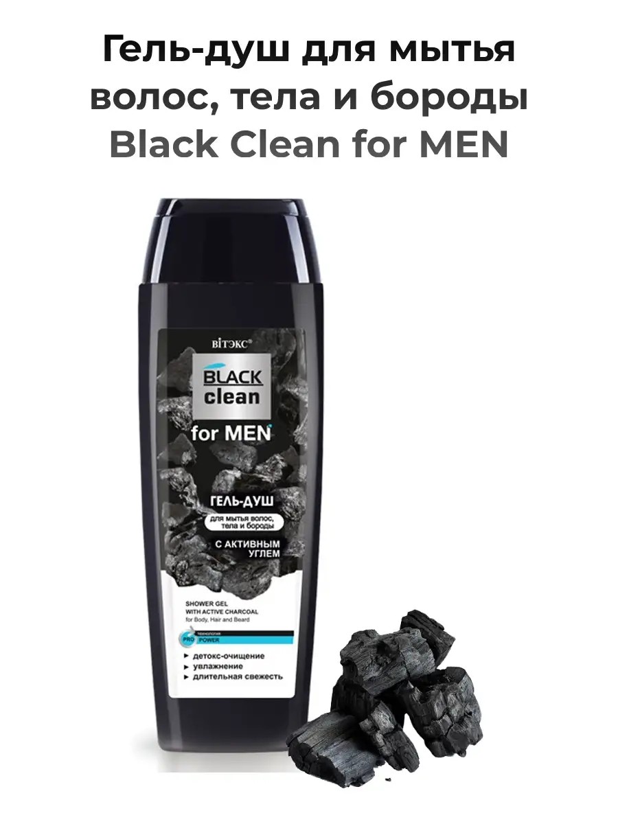 Гель-душ с активным углем для мытья волос, тела и бороды «BLACK clean for MEN» от белорусского бренда Витекс — это идеальное средство для современного мужчины, заботящегося о своем уходе за телом. Уходовая косметика сочетает в себе очищающие и увлажняющие свойства, обеспечивая глубокое очищение кожи и волос. «Умная» технология ProPower в сочетании с эффективными современными компонентами обеспечивает тщательное очищение волос, бороды и кожи тела от загрязнений и токсинов, не раздражая и не пересушивая, дарит длительное ощущение свежести и комфорта. Мужской гель для душа парфюмированный обогащен экстрактами алоэ и фруктов, которые увлажняют и питают кожу, делая ее мягкой и эластичной. Активный уголь эффективно удаляет загрязнения и излишки жира, обеспечивая глубокое очищение пор. Уход для волос и тела с экстрактом женьшеня, пшеницы и ячменя придают коже тонус и свежесть, а также способствуют улучшению ее состояния. Гель для тела увлажняющий обладает успокаивающим эффектом благодаря натуральным компонентам, что делает его идеальным для ежедневного использования. Парфюмированный гель для душа оставляет на коже приятный и свежий аромат, который подчеркивает мужественность. Белорусская косметика линии «BLACK clean for MEN» – для современных и уверенных мужчин, которая позволит в стремительном круговороте жизни и обилии бытовой рутины и стрессов оставаться собой и покорять новые вершины каждый день. Гель для душа мужской парфюмированный станет незаменимым помощником в уходе за телом. Он подходит как для ванны, так и для душа, обеспечивая легкость и комфорт в процессе мытья. Наслаждайтесь ощущением чистоты и свежести с гелем от Vitex!