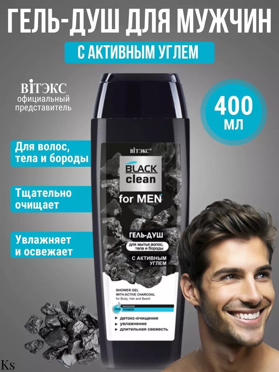 Гель для душа для волос тела и бороды BLACK CLEAN