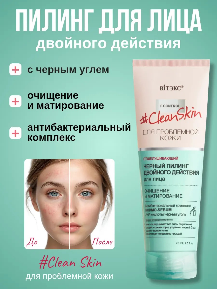 Черный пилинг для лица двойного действия CleanSkin