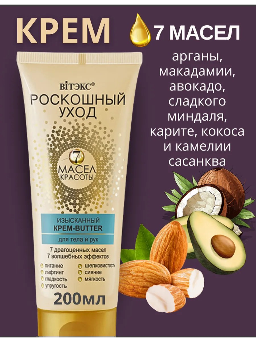 7 драгоценных масел – арганы, макадамии, авокадо, сладкого миндаля, карите, кокоса и камелии сасанква – глубоко питают и восстанавливают сухую и чувствительную кожу, насыщая её витаминами и антиоксидантами. Они помогают защитить кожу от пересыхания, восстанавливают её естественный гидролипидный баланс, придают мягкость и гладкость.