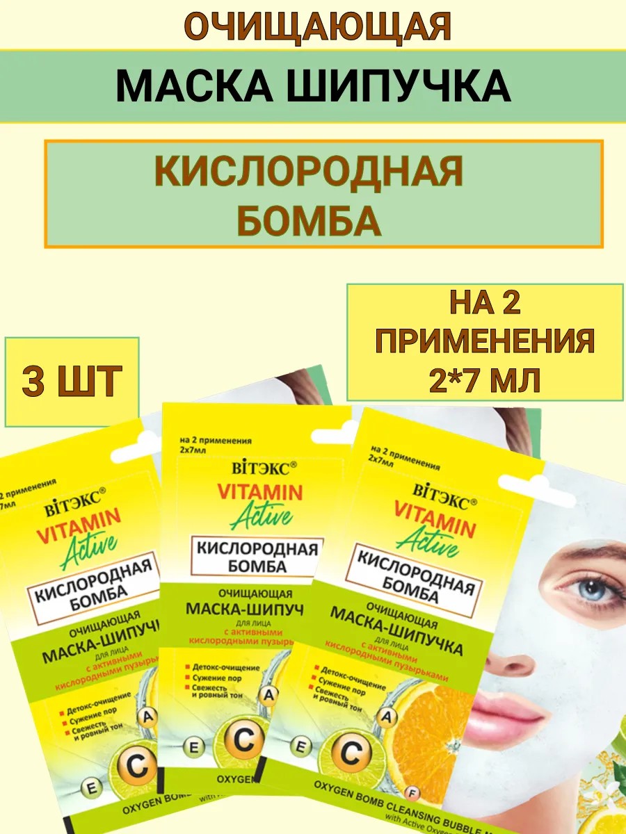 Очищающая МАСКА-ШИПУЧКА для лица КИСЛОРОДНАЯ БОМБА