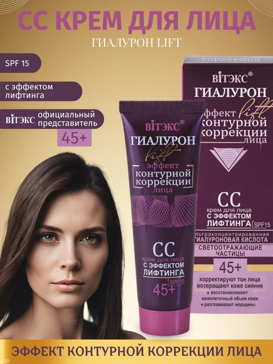 СС крем для лица с эффектом лифтинга от белорусского бренда косметики Витэкс ультраконцентрированная гиалуроновая кислота и cветоотражающие частицы.