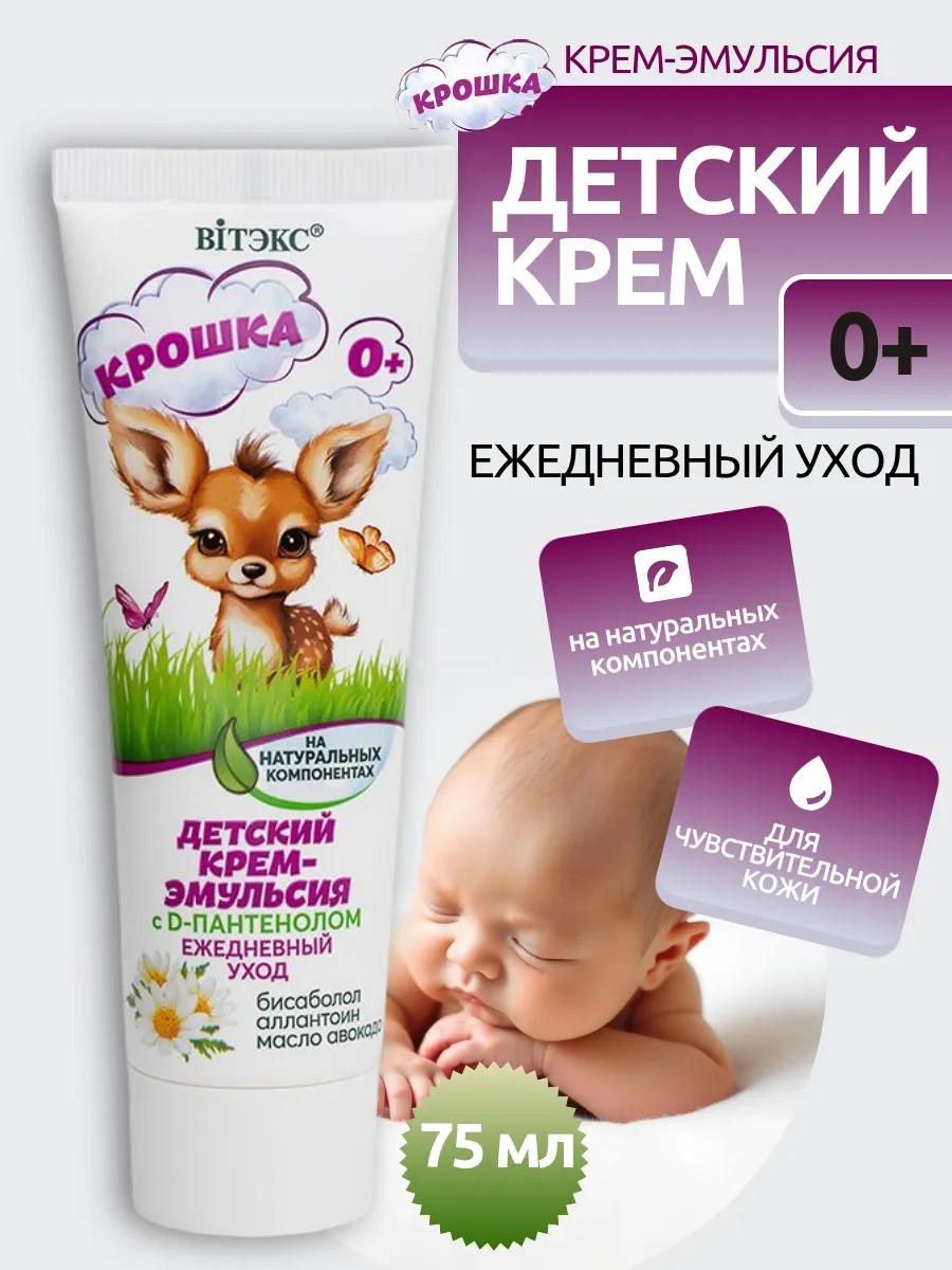 КРОШКА Детский КРЕМ-ЭМУЛЬСИЯ на натуральных компонентах с D-пантенолом ДЛЯ ЧУВСТВИТЕЛЬНОЙ КОЖИ
