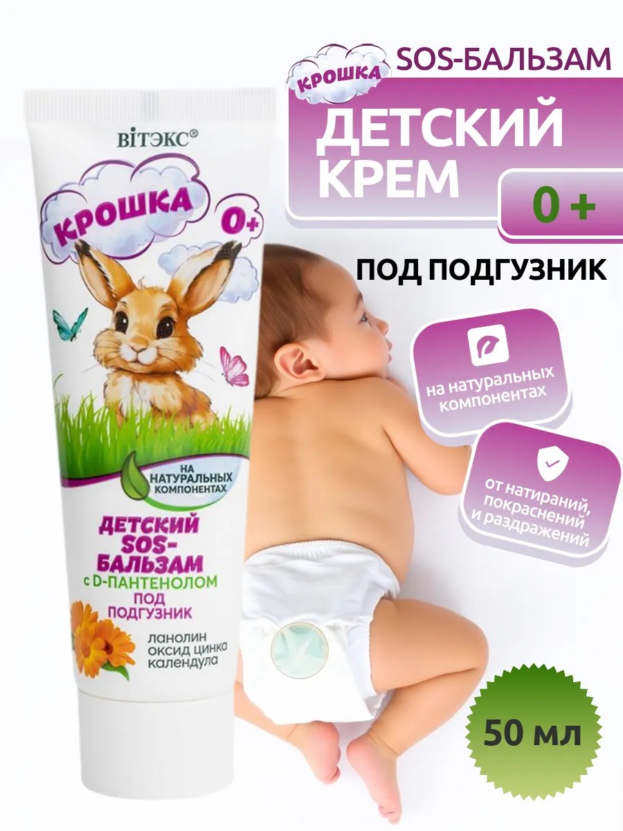 | Полное наименование товара | КРОШКА Детский SOS-БАЛЬЗАМ на натуральных компонентах с D-пантенолом ПОД ПОДГУЗНИК |