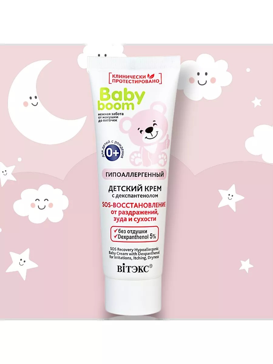 Гипоаллергенный детский крем с декспантенолом SOS-восстановление от раздражения, зуда и сухости.