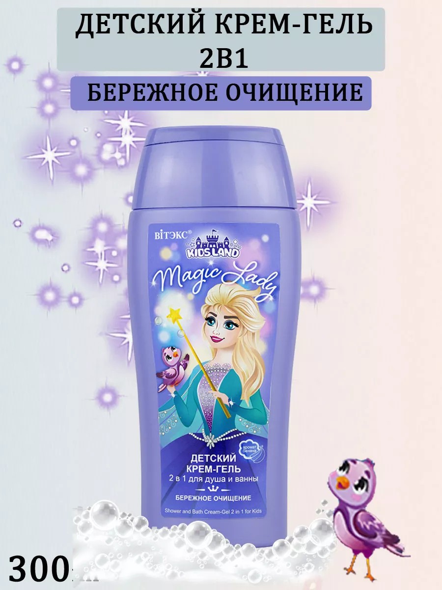 Детский крем-гель для душа и ванны 2в1 KIDSLAND Magic Lady