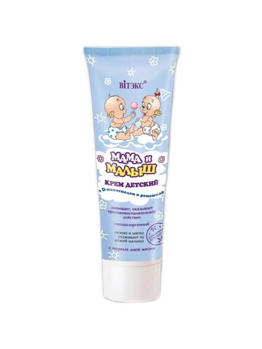 ВИТЭКС МАМА и МАЛЫШ Крем Детский с D-пантенолом и ромашкой 75мл.Клинически доказано: гипоаллергенный, противовоспалительное действие. Богатый по составу крем обладает противовоспалительным и защитным действием, идеально подходит для деликатного ухода за нежной кожей ребенка с самого рождения. D-пантенол и экстракт ромашки увлажняют, предотвращают раздражения и покраснения. Благодаря нежной текстуре, крем легко наносится на кожу и быстро впитывается. Рекомендуется для ежедневного ухода, а также для защиты от неблагоприятных внешних факторов окружающей среды. Бренд: Витэкс Объем: 75 мл.