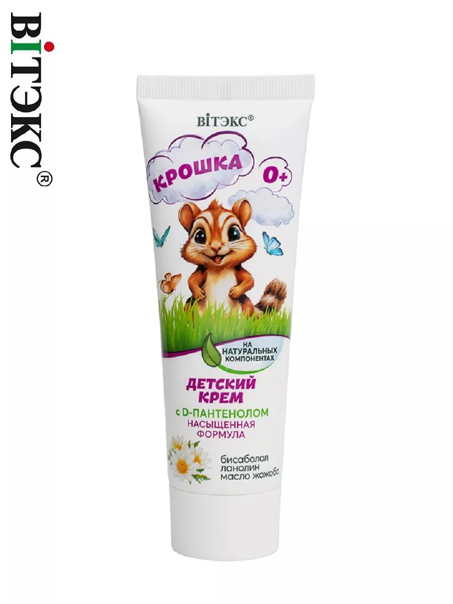 Детский крем на натуральных компонентах с d-пантенолом насыщенная формула, 75мл. На натуральных компонентах. Насыщенный крем с высоким содержанием натуральных масел подходит для ухода за чувствительной, склонной к раздражениям, шелушениям, сухости кожей малышей с рождения. Ухаживающие компоненты. D-пантенол обладает мощнейшими восстанавливающими свойствами, быстро снимает зуд, раздражение, покраснение и воспаление кожи, дарит моментальный комфорт сразу после нанесения, сохраняет необходимый уровень увлажненности, препятствует появлению сухости, шелушений и раздражений. Масла жожоба и кунжута интенсивно питают и увлажняют кожу, насыщают ее незаменимыми липидами, смягчают, придают гладкость и шелковистость. Витамин е улучшает процессы обновления клеток, устраняет сухость и шелушение, способствует укреплению защитного барьера кожи, предохраняет ее от появления раздражений и трещин, делает кожу нежной и мягкой. Ланолин защищает кожу от пересушивания, стимулирует быструю регенерацию поврежденных тканей. Бисаболол оказывает эффективное противовоспалительное и антимикробное действие, успокаивает кожу, уменьшает покраснения. Крем обладает деликатным, еле уловимым ароматом. Без силиконов и красителей. Применение: нанесите на чистую сухую кожу.