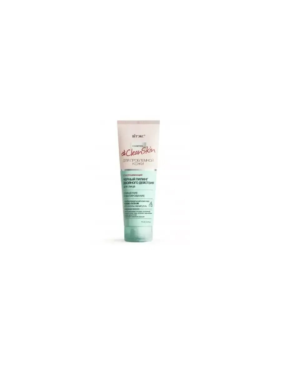 ВИТЭКС CLEAN SKIN для проблемной кожи Чёрный ПИЛИНГ для лица ОЧИЩЕНИЕ и МАТИРОВАНИЕ двойного действия 75мл,мягко отшелушивает все виды загрязнений с кожи - очищает и сужает поры, устраняет жирный блеск - удаляет черные точки - препятствует появлению прыщей Черный пилинг адсорбирует излишки кожного жира, бережно отшелушивает ороговевшие клетки и мягко скатывает все виды загрязнений с кожи. Умная формула пилинга объединяет в себе механическую и химическую эксфолиацию. Деликатно, не травмируя кожу, глубоко очищает поры, удаляет черные точки, устраняет жирный блеск, выравнивает микрорельеф кожи, сглаживает следы постакне, улучшает цвет лица, предупреждает появление угревой сыпи и укрепляет защитные функции кожи. Активные компоненты: антибактериальный комплекс Normo-Sebum, черный кокосовый уголь, комплекс АНА-кислот.