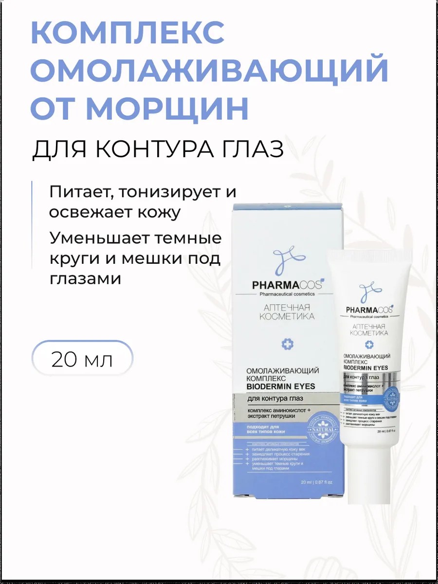 | Полное наименование товара | Комплекс для контура глаз Омолаживающий от морщин, Biodermin Eyes, Pharmacos, 20 мл |
