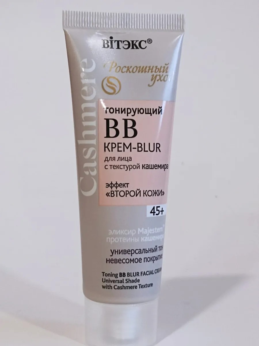 Тонирующий ВВ крем серии Роскошный уход 45+ от белорусского бренда витекс. Это легкий универсальный тон для лица с текстурой кашемира и эффектом "второй кожи" Универсальный тон подстаивается под лббой оттенок кожи , выравнивает его и создает невесомое покрытие. результат вас впечатлит: нежная, сатиновая кожа, свежий и здоровый цвет в течении всего дня.