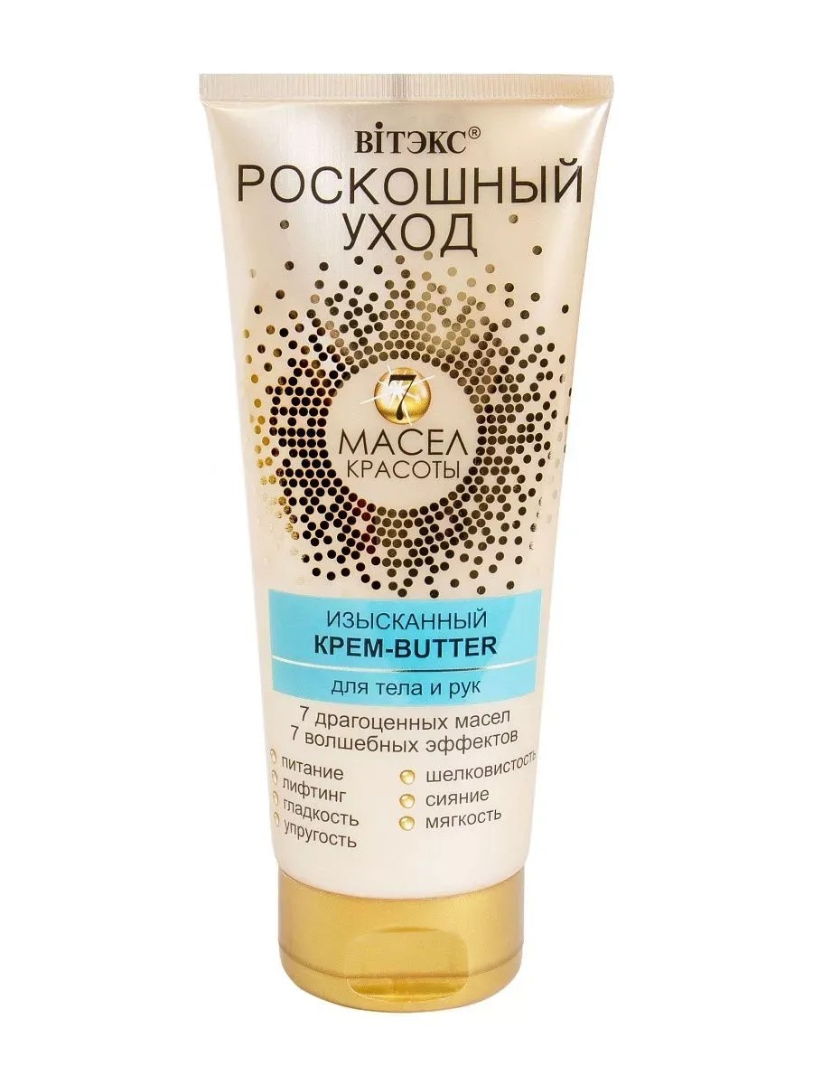 Каким бы средством по уходу за руками и телом вы не пользовались, одна из главных его задач обеспечить необходимое увлажнение и питание, при этом создать максимальный комфорт и быть легким в применении. Белорусские мастера бренда "Витэкс" разработали превосходный крем-butter для тела и рук, который станет квинтессенцией питательных веществ, способных принести пользу вашей коже. Крем "Роскошное питание 7 Масел красоты" обладает невесомой сливочной текстурой и легким ненавязчивым ароматом. Его состав обогащен комплексом 7 полезных масел: арганы, макадамии, сладкого миндаля, авокадо, кокоса, карите и камелии сасанква. Благодаря им даже очень сухая и чувствительная кожа получит максимальное увлажнение и насыщение. После применения вы ощутите нежность и бархатистость, а сухость проблемных участков заметно уменьшится.