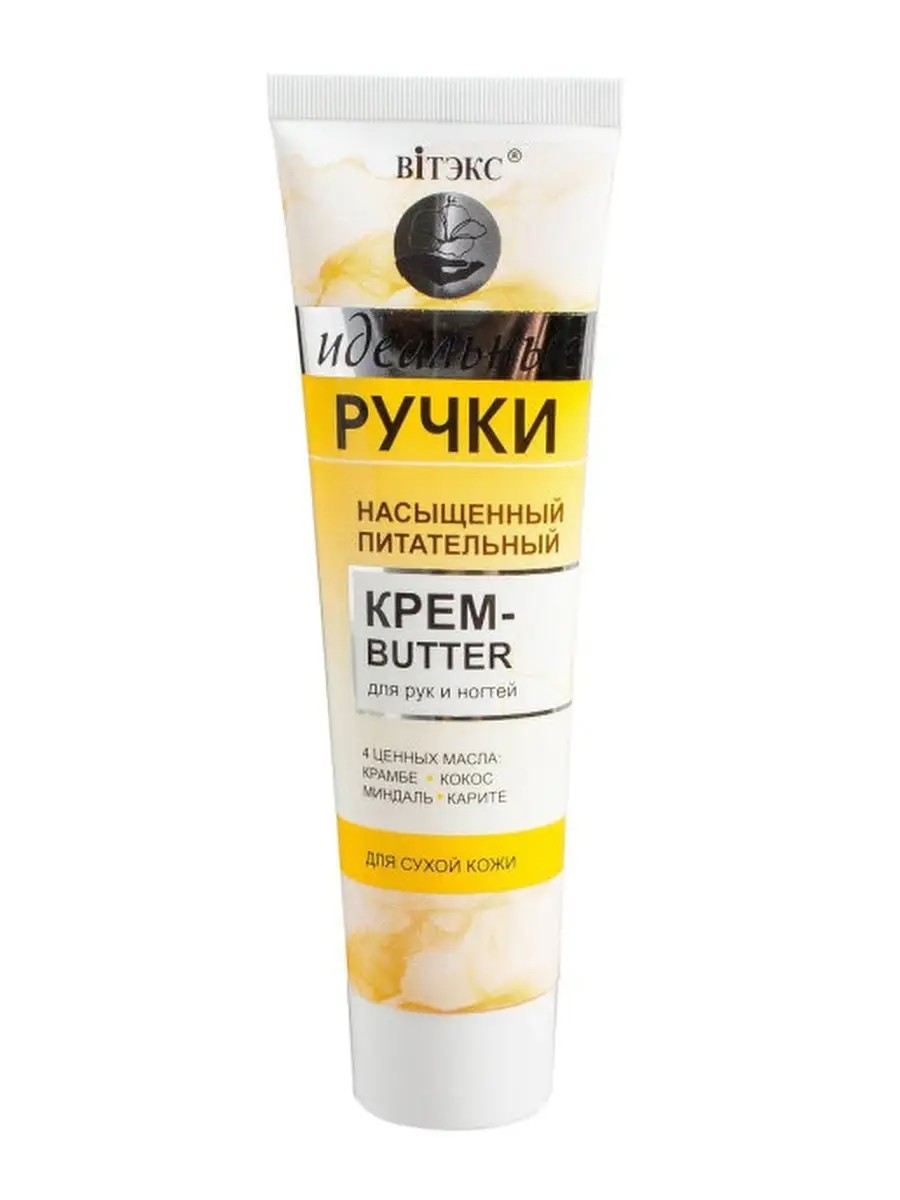 Насыщенный питательный крем-butter для рук и ногтей «Идеальные ручки» от белорусского бренда Витекс — это идеальное решение для ухода за кожей ваших рук. Уходовая косметика обеспечивает глубокое увлажнение и питание, делая кожу мягкой и гладкой. Для глубокого питания сухой и очень сухой кожи рук, интенсивного ухода за кутикулой и ломкими ногтями крем баттер для рук— незаменимое средство. Особая текстура крема нежно обволакивает кожу рук и дарит непревзойденную мягкость и бархатистость. Крем-butter для рук — удивительное сочетание 4-х питательных и полезных масел: крамбе, кокоса, карите и миндаля. Уход за телом содержит масло кокоса, которое питает и смягчает кожу, создавая на ней невесомую невидимую защитную пленку. Крем для рук маленький с глицерином и ланолином в составе способствуют удержанию влаги, предотвращая сухость и трещины. Масло миндаля и кератин способствуют укреплению ногтей, предотвращают расслаивание и ломкость, регулируют липидный и водный баланс. Масло карите действует сразу в трёх направлениях: прекрасно увлажняет кожу благодаря жирным кислотам и природным витаминам А, Д и Е; защищает кожу от внешних воздействий: ветра, солнца, воды; способствует устранению сухости и шелушения; возвращает коже гладкость и упругость.Питательный крем для рук и ногтей способствует улучшению состояния ногтей, делая их более крепкими и ухоженными. Крем для рук увлажняющий для сухой кожи быстро впитывается, не оставляя жирной пленки, что делает его идеальным для ежедневного использования. Увлажняющий крем для рук и ногтей подходит для всех типов кожи, обеспечивая комплексный уход за руками. Белорусская косметика линии «Идеальные ручки» - легкий и приятный путь к комфорту, красоте и совершенству ваших нежных рук. Используйте увлажняющий и питательный крем для рук регулярно, чтобы насладиться мягкой, ухоженной кожей и крепкими ногтями. Позвольте себе роскошь качественного ухода с кремом от Vitex!