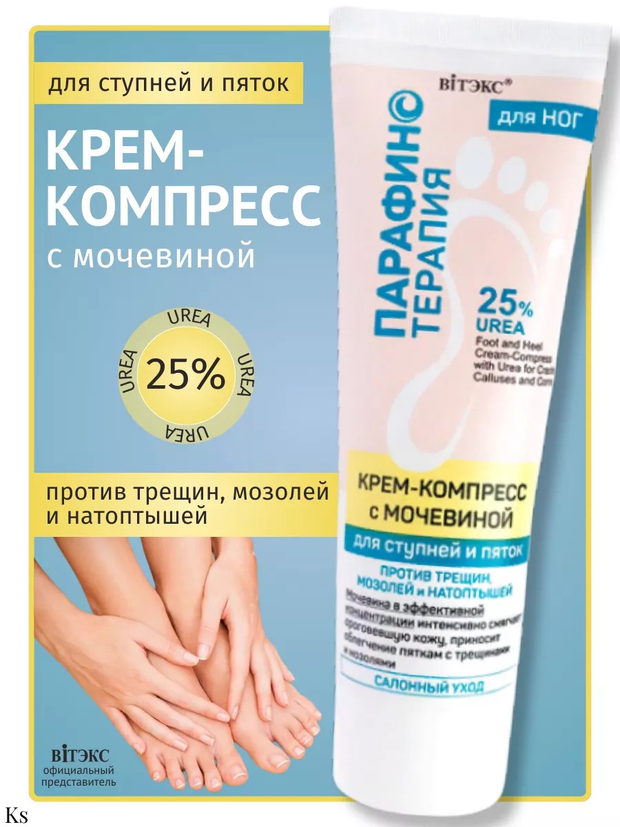 Крем-компресс с мочевиной против трещин и мозолей и натоптышей для ступней и пяток 25% мочевины.