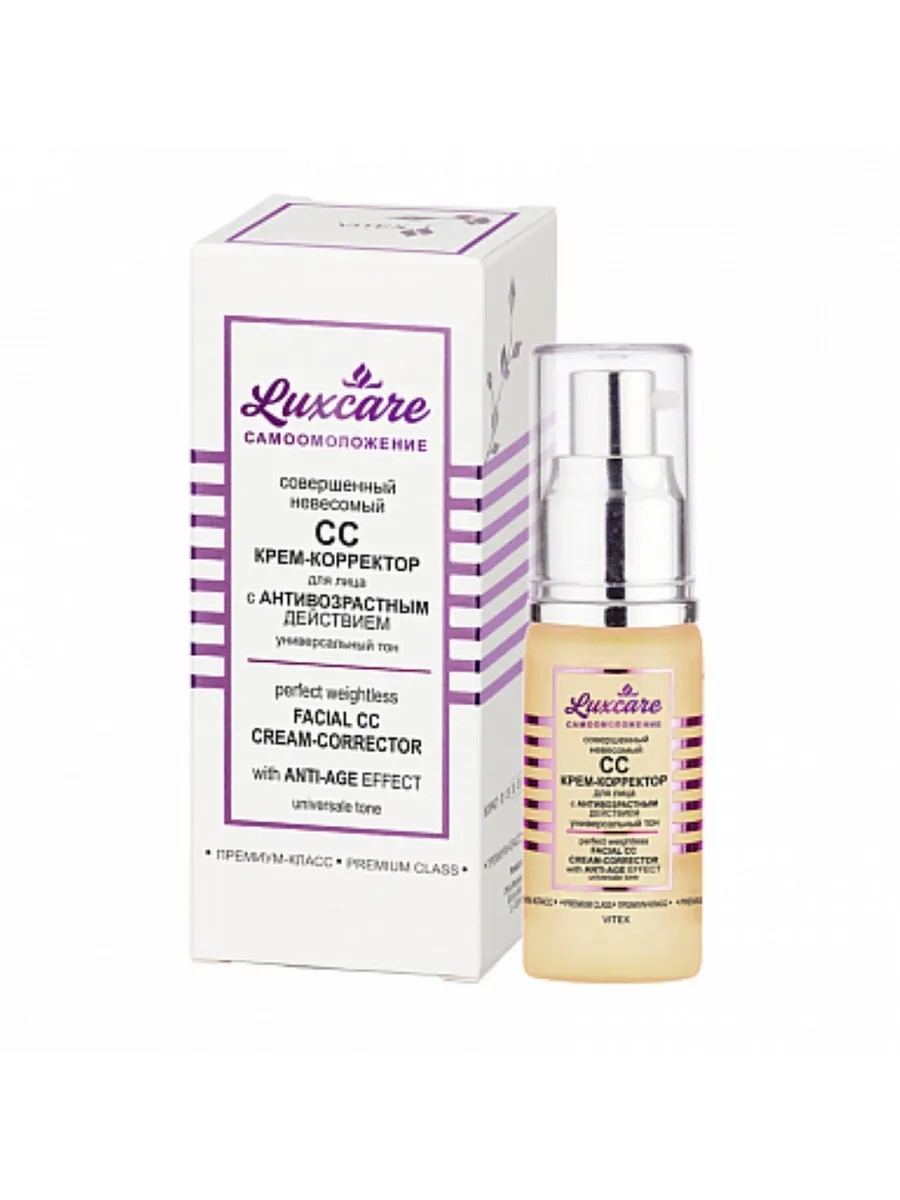 Витэкс Lux Care, Крем-корректор для лица с антивозрастным действием, 30мл. Уникальное средство, сочетающее в себе безупречные тонирующие свойства корректора и антивозрастное ухаживающее действие дневного крема. Мгновенно обеспечивает ровное, невесомое покрытие, идеально маскируя несовершенства кожи, визуально сужает поры, дарит бархатистую мягкость и совершенное сияние кожи. Комбинация высокоактивных компонентов с мощными антивозрастными свойствами активизирует 11 факторов красоты кожи и образует целостную синергетическую систему, направленную против признаков увядания кожи: интенсивно питает, увлажняет и восстанавливает, уменьшает морщинки и носогубные складки, обеспечивает усиленное антиоксидантное действие, улучшает и выравнивает тон кожи. Невесомая "дышащая" вуаль крема в течение всего дня совершенствует кожу, делая ее притягательно красивой. Активные компоненты: Epidermal Growth Factor, OsmogelineTM, Fucogel, аминокислоты, витамины, сквалан.