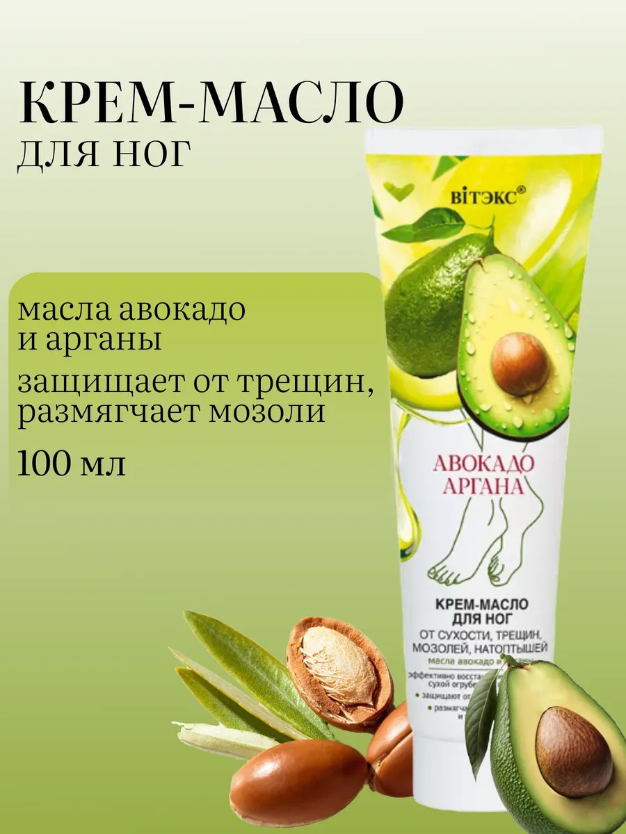 Крем-масло для ног от сухости и трещин от белорусского бренда Витекс — это эффективное средство для ухода за кожей ног, которое поможет вернуть ей мягкость, гладкость и здоровый вид. Формула крема обогащена мочевиной, известной своими увлажняющими и смягчающими свойствами, а также маслом кокоса, авокадо и аргана, которые глубоко питают и восстанавливают кожу. Крем для пяток от трещин и сухости эффективно борется с сухостью, трещинами, мозолями и натоптышами, делая кожу ног более эластичной и упругой. Его универсальная формула подходит для дневного и ночного применения, а также для использования после душа или ванны. Крем для ног с мочевиной подходит для всех типов кожи, в том числе для сухой и проблемной. Благодаря своей легкой текстуре, крем быстро впитывается, не оставляя жирных следов, и дарит ощущение комфорта и свежести. Регулярное применение крема для ног от трещин и сухости "Авокадо и Аргана" от Vitex поможет вам сохранить красоту и здоровье ваших ног.