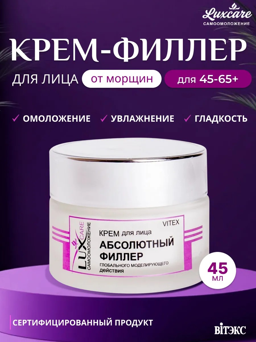 | Полное наименование товара | Крем филлер от морщин для лица и шеи 45 55 65+ Luxcare Абсолютный филлер Витекс |
