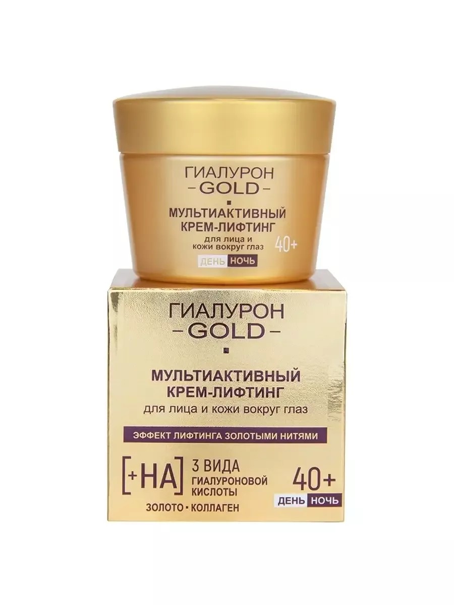 Мультиактивный крем-лифтинг создан с учетом особенностей и потребностей кожи в возрасте после 40 лет. Сверхсовременная богатая формула обеспечивает коже полноценный всесторонний уход 24 часа: глубокое увлажнение, питание и восстановление, замедление возрастных изменений в разных слоях эпидермиса, а также мощный и продолжительный эффект подтяжки, сравнимый с эффектом лифтинга золотыми нитями. Гиалуроновая кислота трех молекулярных размеров активно действует как на поверхности, так и в глубине кожи, обеспечивая непревзойденный омолаживающий результат: моментальное заполнение мимических морщинок уменьшение носогубных складок, глубоких морщин и заломов интенсивное увлажнение и повышение упругости кожи