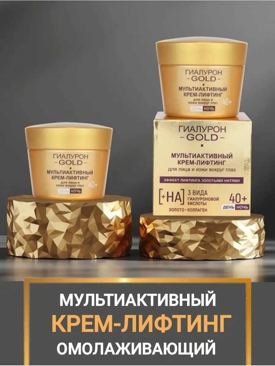 Мультиактивный крем-лифтинг для лица и кожи вокруг глаз 40+, день и ночь. Мультиактивный крем-лифтинг создан с учетом особенностей и потребностей кожи в возрасте после 40 лет. Сверхсовременная богатая формула обеспечивает коже полноценный всесторонний уход 24 часа: глубокое увлажнение, питание и восстановление, замедление возрастных изменений в разных слоях эпидермиса, а также мощный и продолжительный эффект подтяжки, сравнимый с эффектом лифтинга золотыми нитями.
