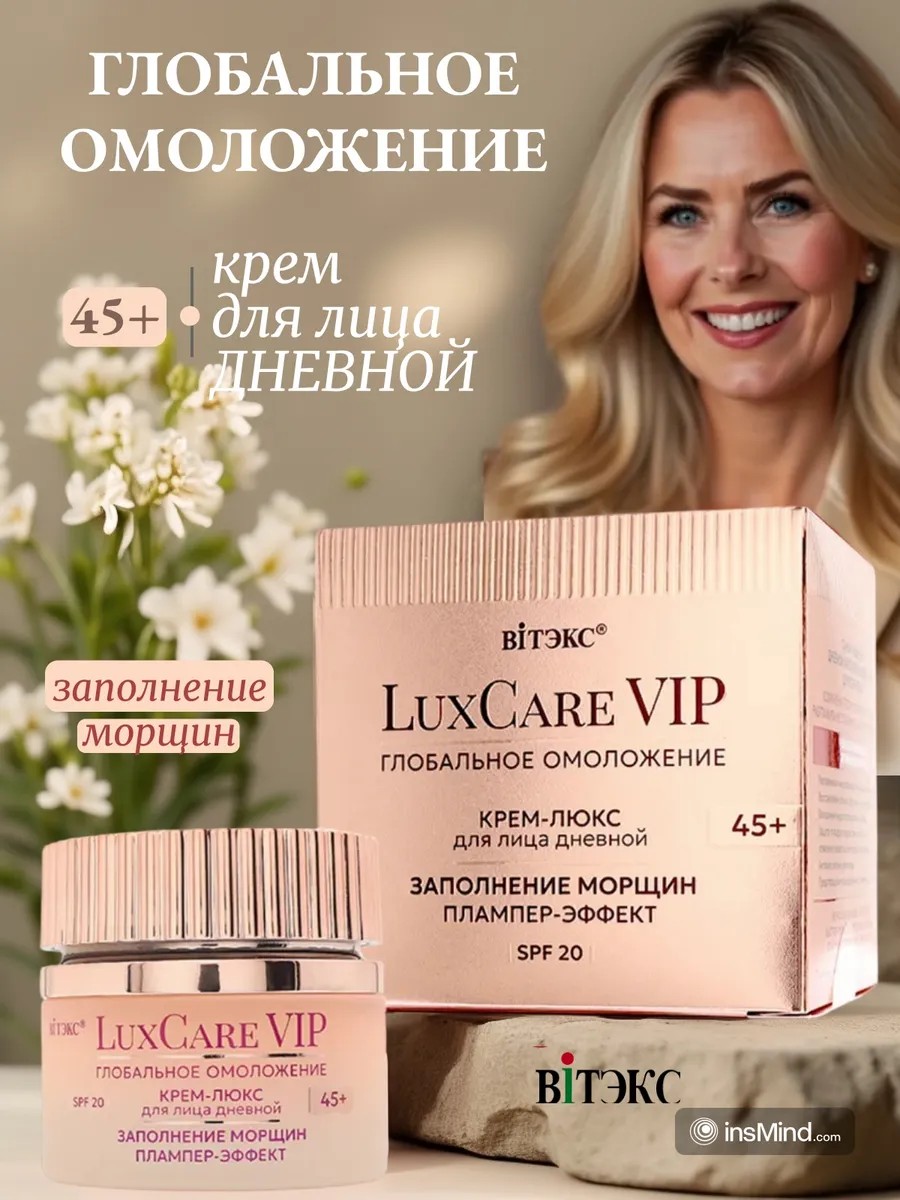 ПРЕМИАЛЬНОЕ КАЧЕСТВО LUXCARE VIP – БЫСТРОЕ УМЕНЬШЕНИЕ ВОЗРАСТНЫХ ИЗМЕНЕНИЙ, СТОЙКИЙ ВЫРАЖЕННЫЙ ЭФФЕКТ ОМОЛОЖЕНИЯ