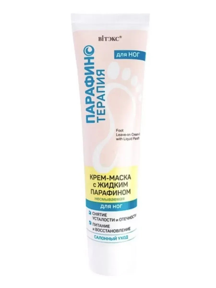 Bitэкс Парафинотерапия, Крем-маска для ног с жидким парафином несмываемая 100 мл. Жидкий парафин – высокоэффективный компонент, который используется в профессиональных косметических салонах для ухода за кожей ног. Благодаря уникальным свойствам, он обеспечивает быстрые видимые результаты, чтобы надолго вернуть коже превосходную гладкость, мягкость и ухоженный вид. Жидкий парафин создает невесомую окклюзивную дышащую пленку, которая препятствует пересушиванию, и кожа длительное время остаётся увлажненной, напитанной, мягкой и нежной.