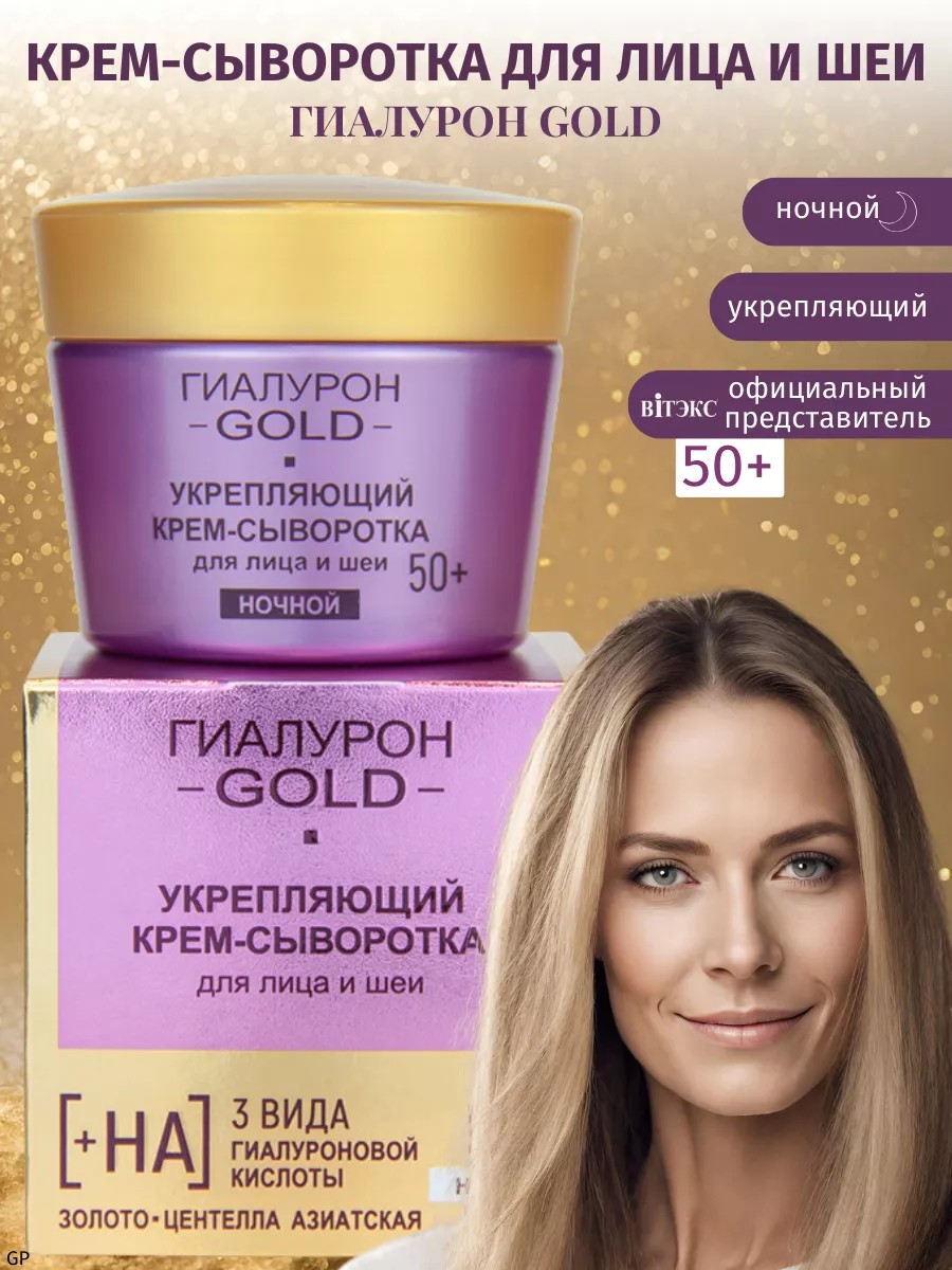 Крем - сыворотка ночной Укрепляющий ГИАЛУРОН GOLD 50+