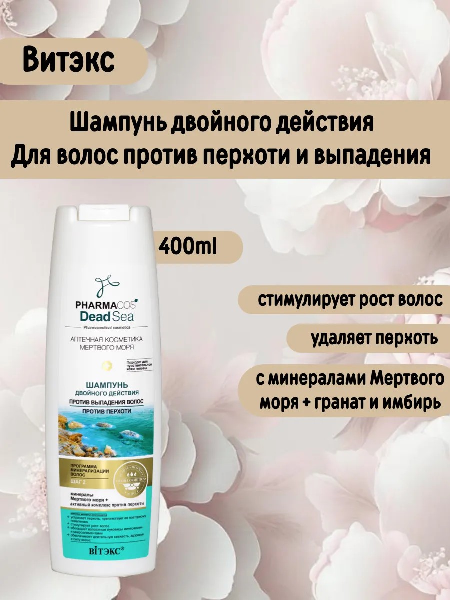 | Комплектация | ШАМПУНЬ ДВОЙНОГО ДЕЙСТВИЯ против выпадения волос против перхоти, PHARMACos Dead Sea 400мл 1шт |