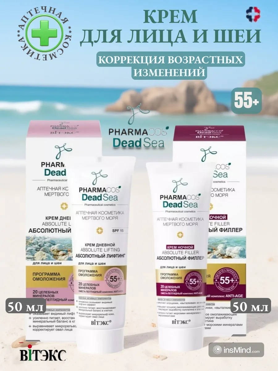| Комплектация | Крем дневной 55+ «Аbsolute lifting Абсолютный лифтинг» для лица и шеи SPF 15; Крем ночной 55+ «Аbsolute filler Абсолютный филлер» для лица и шеи 50 мл |